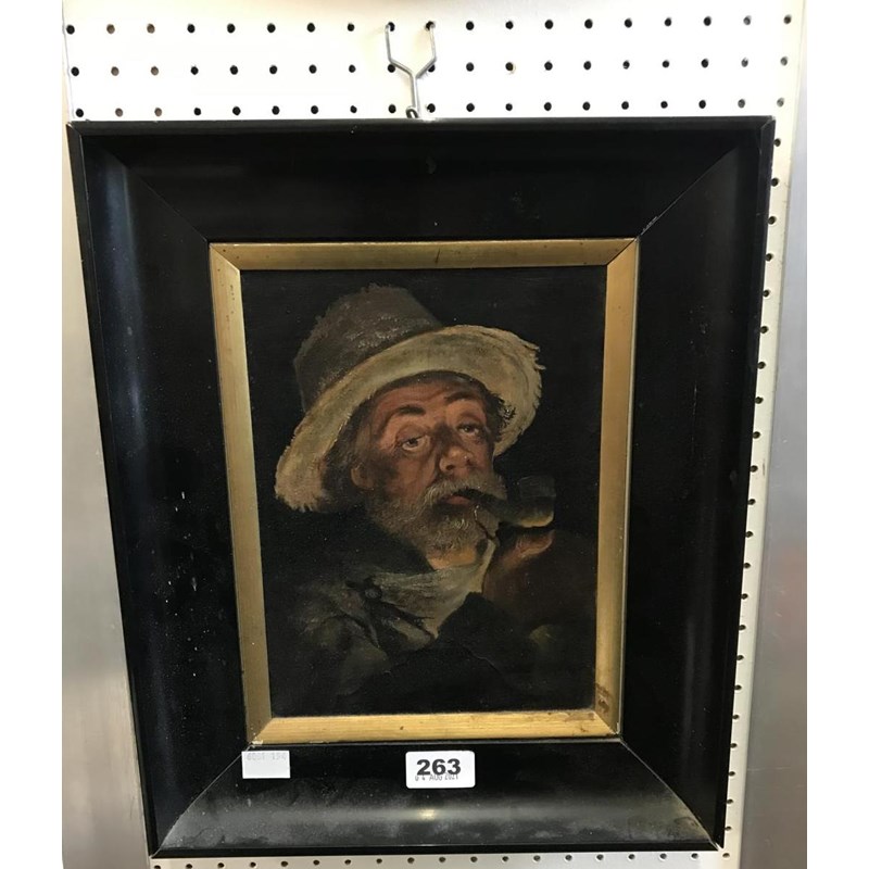 Portrait of a Characterful Gentleman Smoking a Pipe, Oil on Canvas