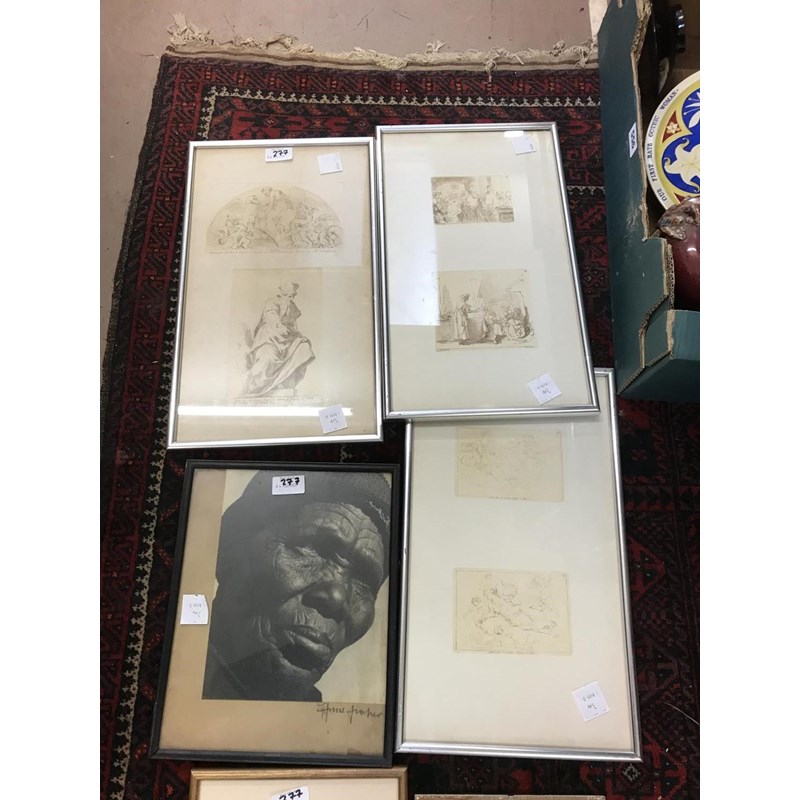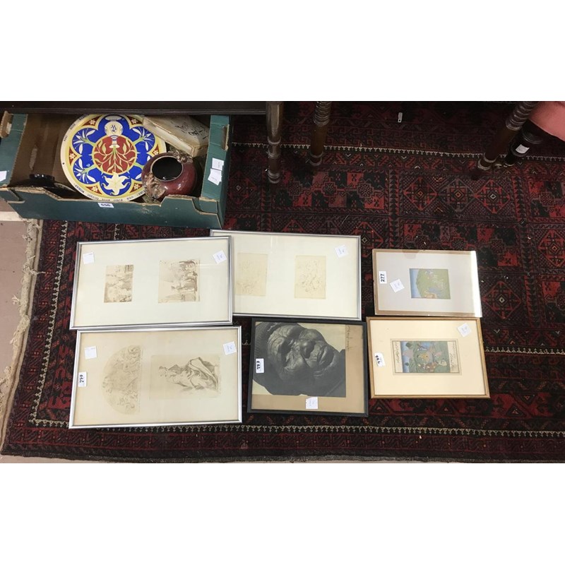 Three Framed Etchings, Two Modern Persian Pictures and a Signed Photo