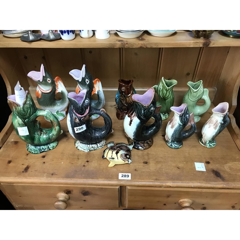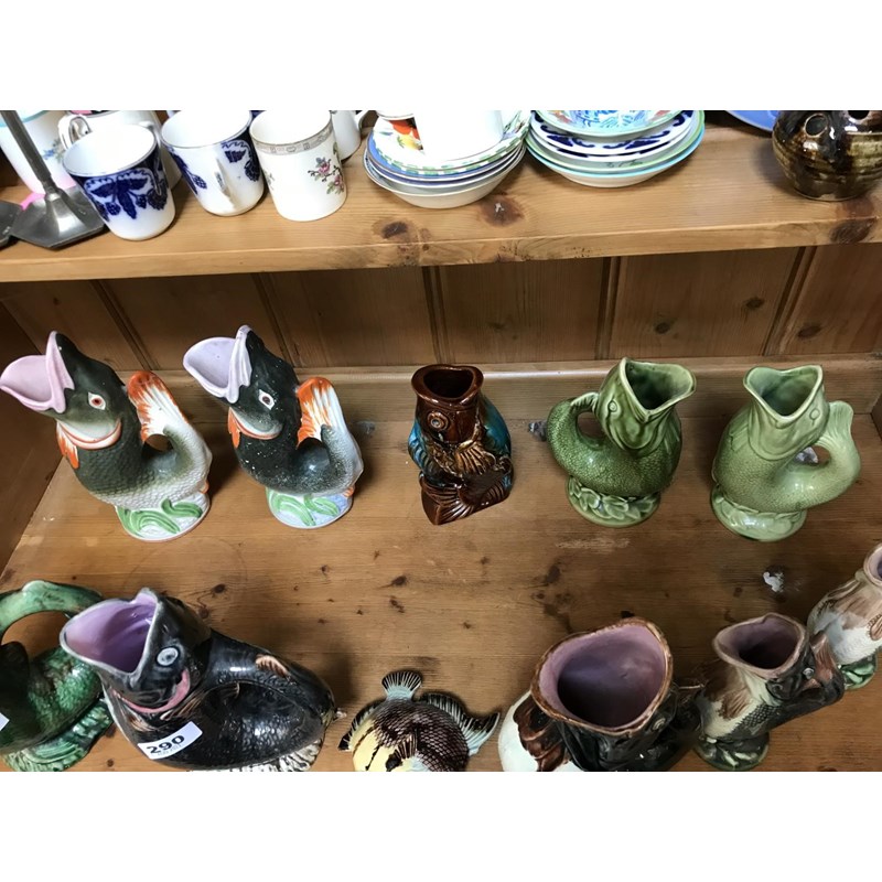 Majolica Fish Jugs (some possibly by George Morley), Staffordshire Fish Jugs, Majolica Fish etc