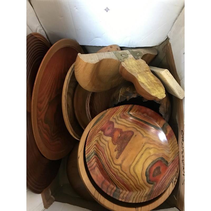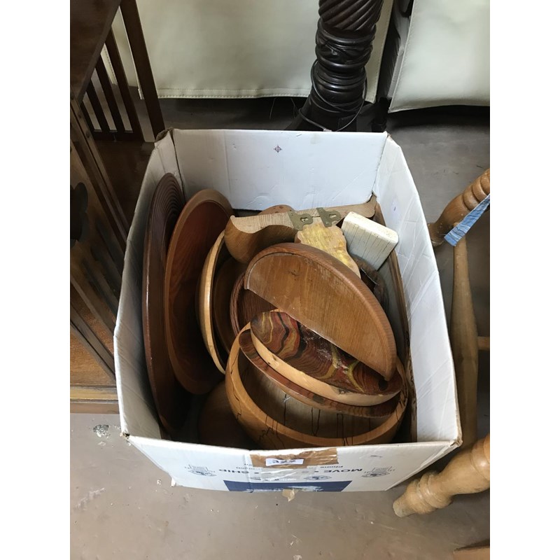 Box of Assorted Wooden Items, Ornaments, Plates etc
