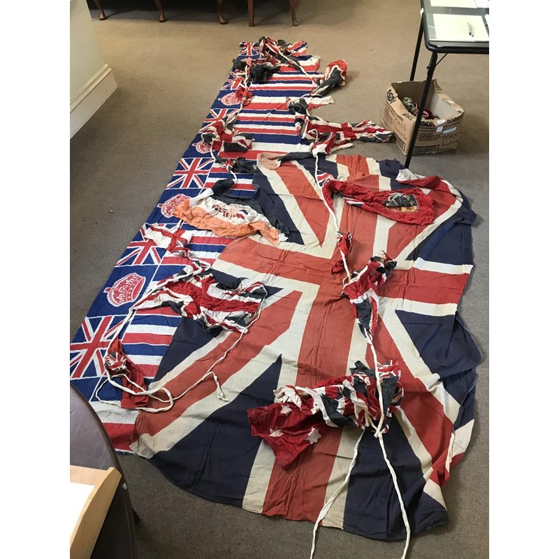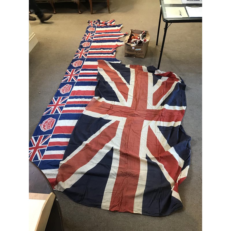 Box of Vintage Poss. WWII Union Jack Flags, Bunting etc