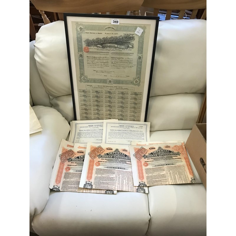 Chinese Share Certificates, One Framed