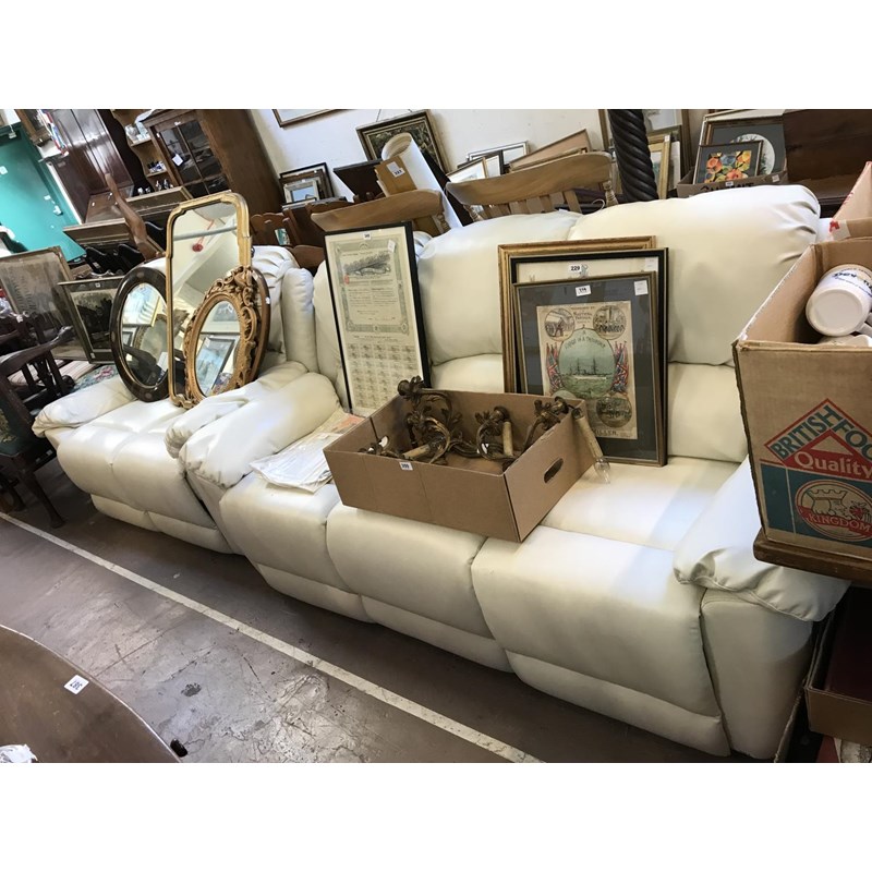 Two Seater and Three Seater White Leather Sofas