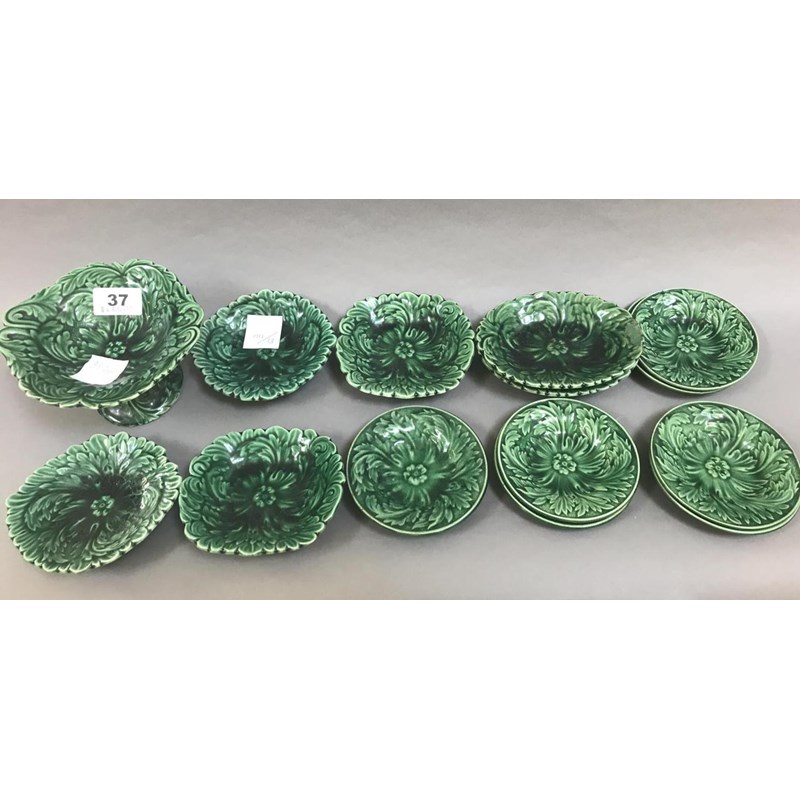 Group of Green Leaf Pattern Pottery