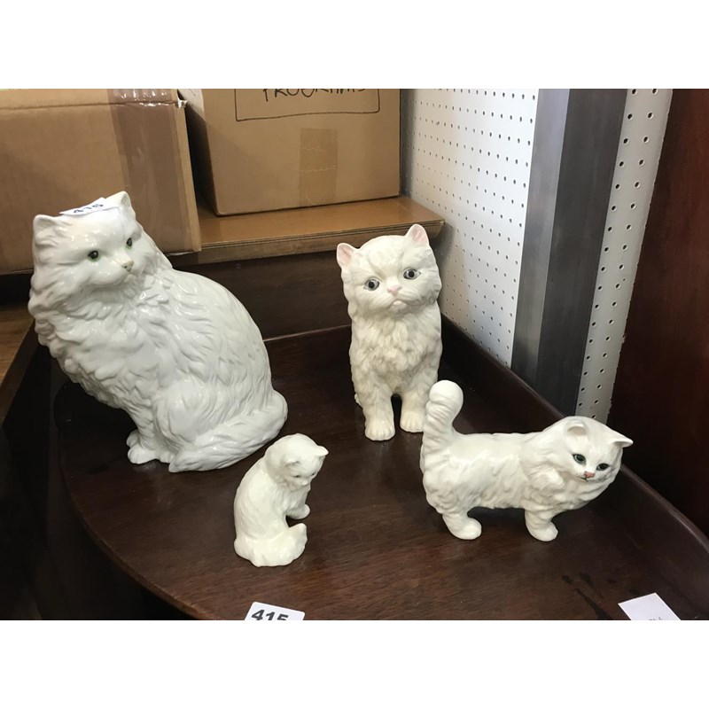 Four White Ceramic Cats including Beswick & Goebels