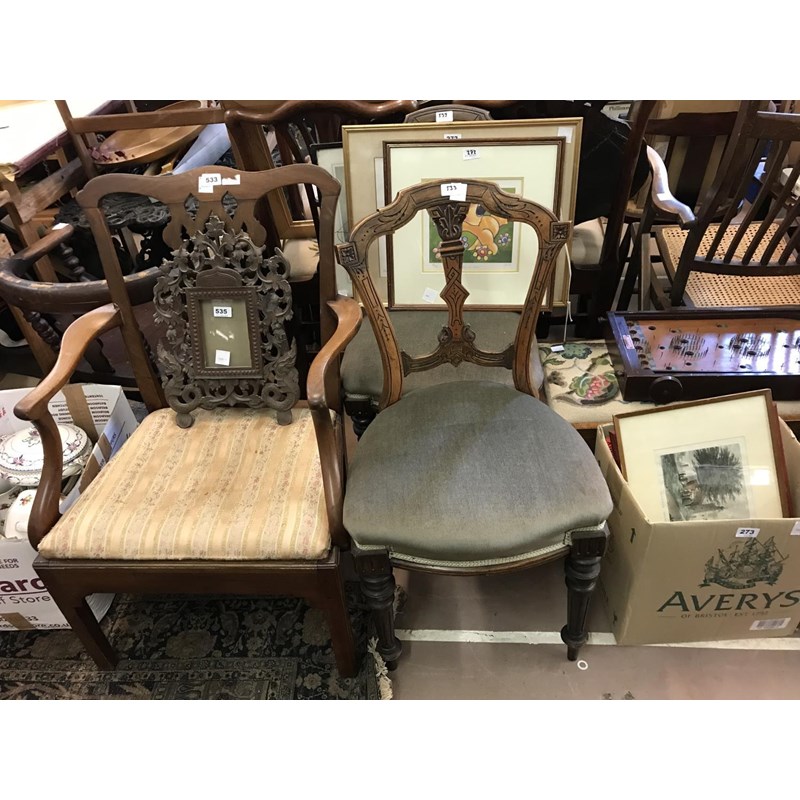 Mahogany Open Armchair and a Pair of Dining Chairs