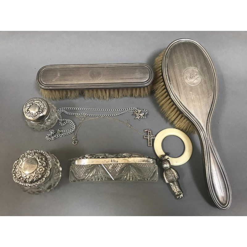 Mixed Lot of Silver, Part Vanity Set, Baby Rattle etc