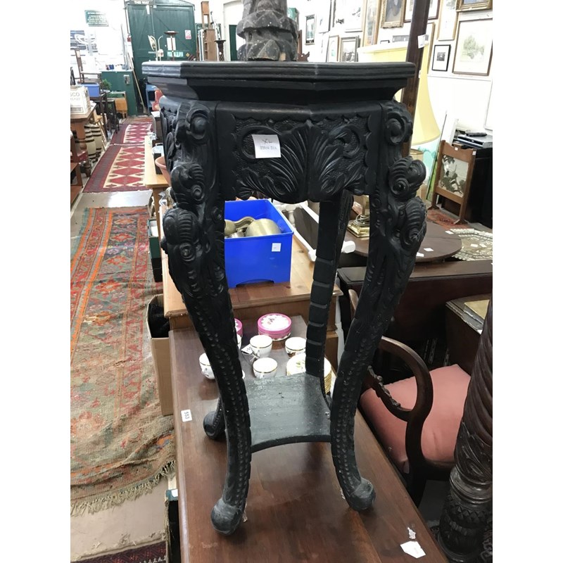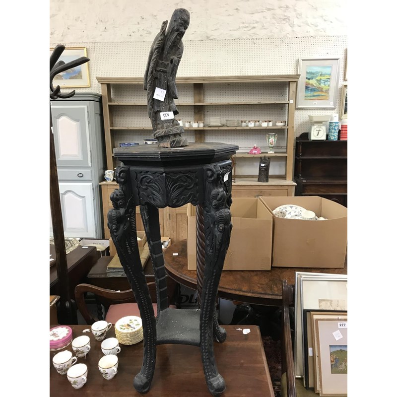 Carved Chinese Table/Plant Stand and a Carved Sage Figure