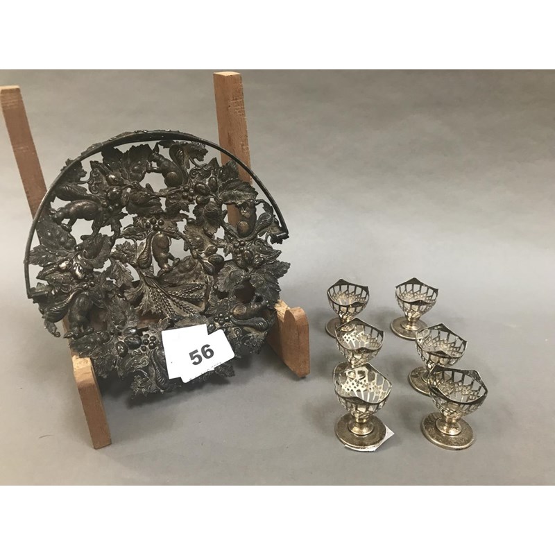 White Metal Basket with Set of Six Mappin & Webb Silver Cups