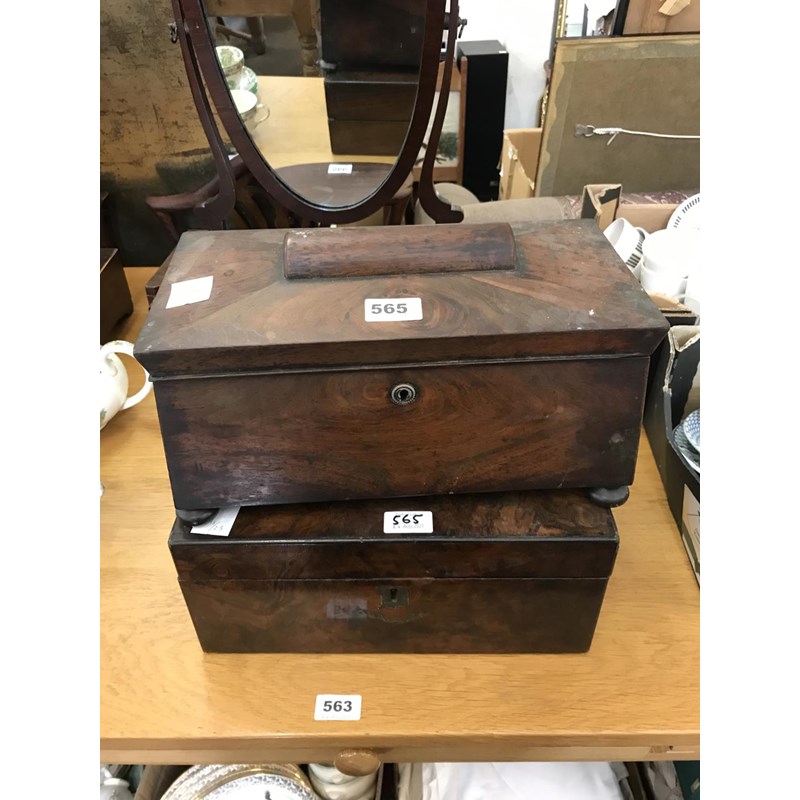 Victorian Rosewood Tea Caddy and Walnut Box