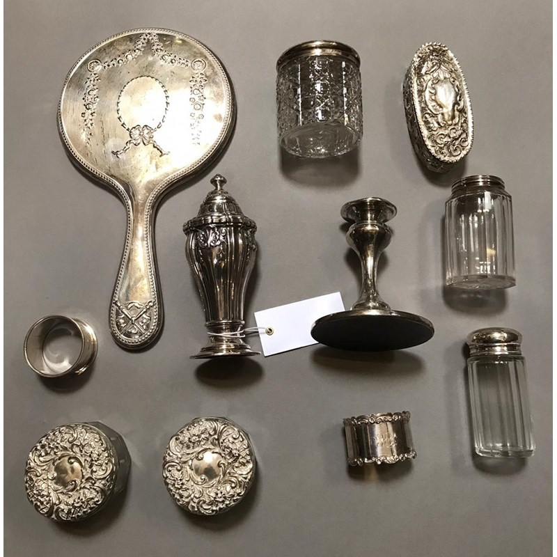 Silver Lidded Jars, Napkin Ring and Other Silver and Plate