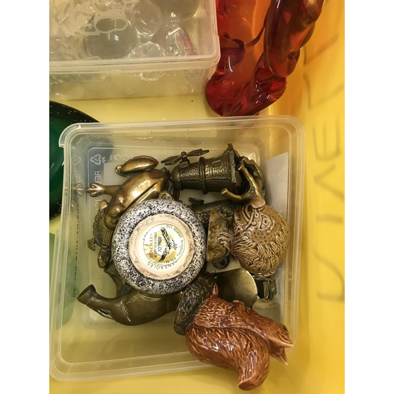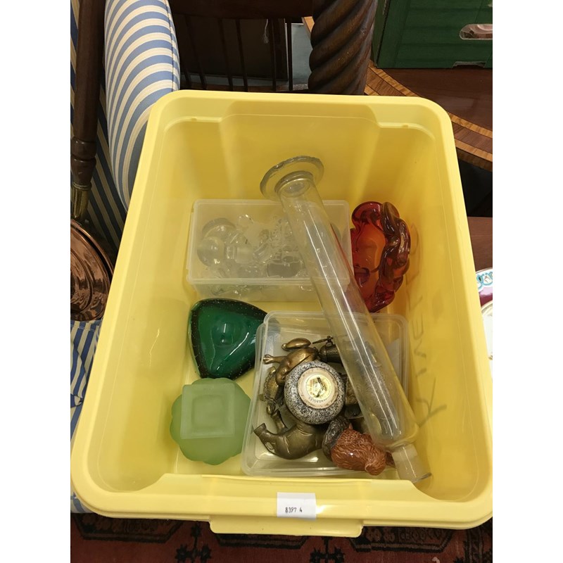 Assorted Glass, Brass Figures etc
