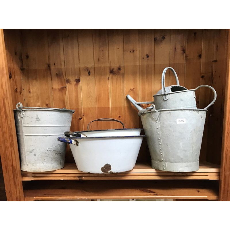 Assorted Watering Cans, Enamel Boxes, etc