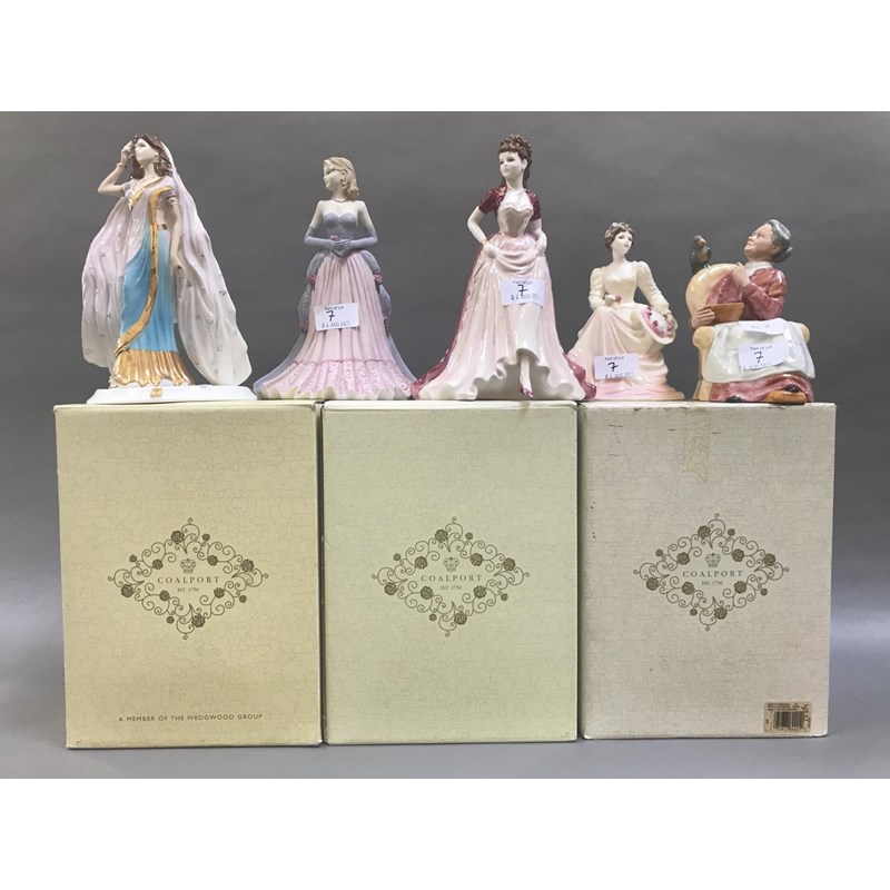 Three Boxed Coalport Ladies, Royal Doulton 'Pretty Polly' and Coalport Lady (5)