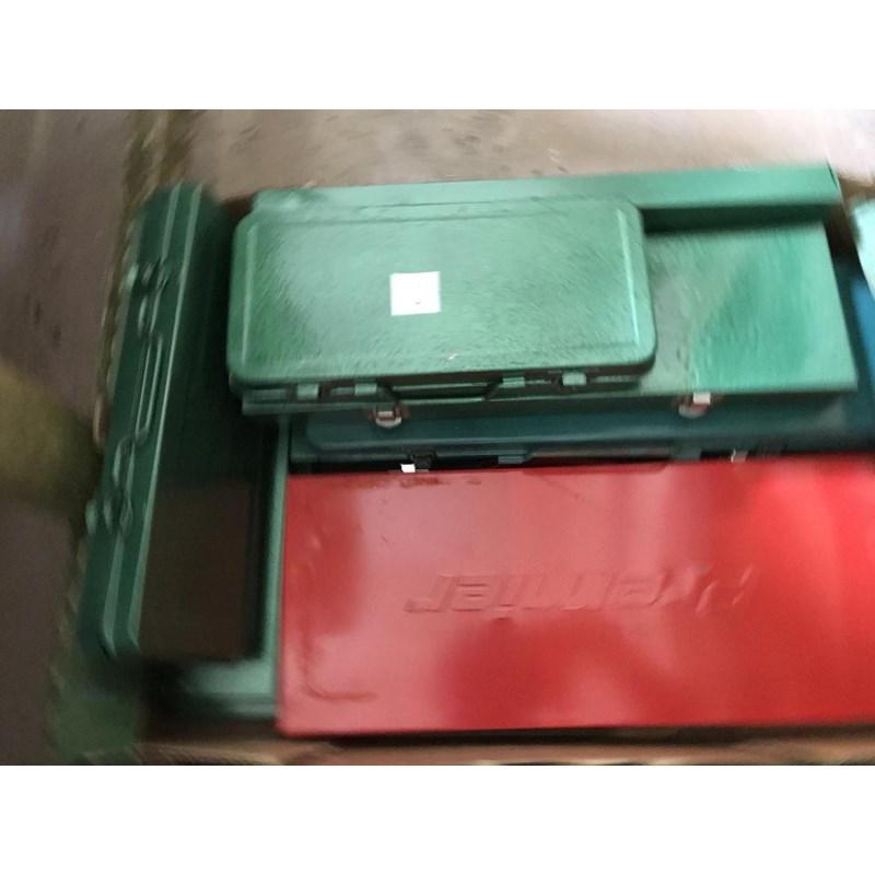 Box of Empty Metal Tool Boxes
