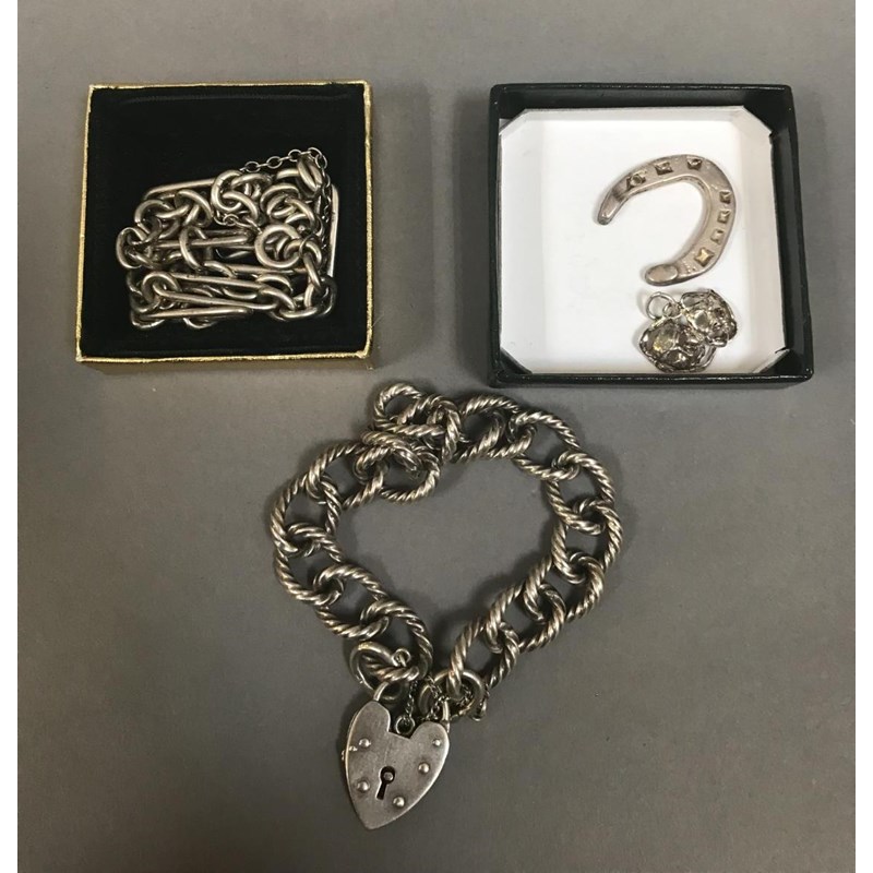 Silver Locket and Chain, Silver Watch Chain, Horseshoe Brooch etc