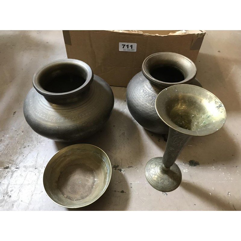 Brass Pots, Candlestick etc