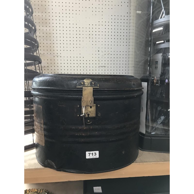 Antique Tin Hat Box with Steam Ship Labels