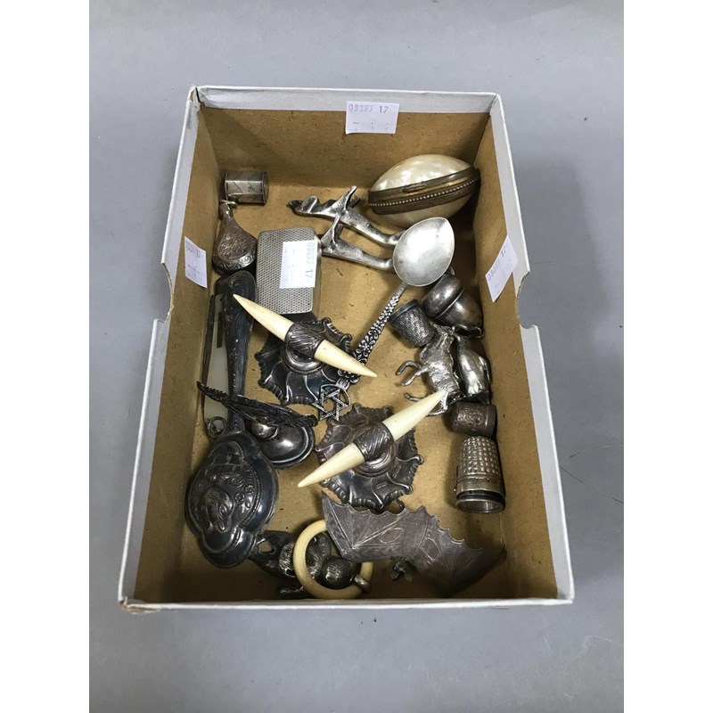 Small Silver and Plated Items: Rattle, Thimbles, Boxes etc