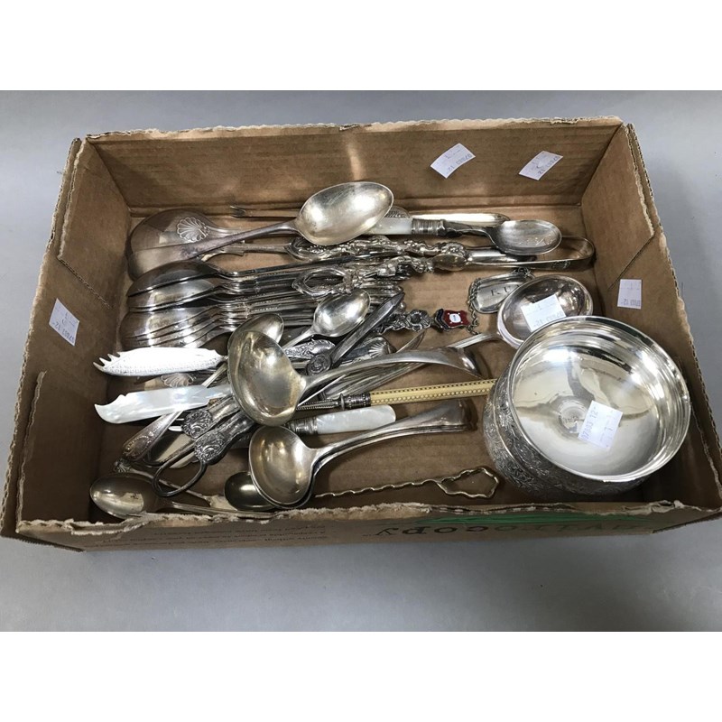 Quantity of Platedware: Knives, Forks, Spoons, Grape Shears and Two Bowls etc
