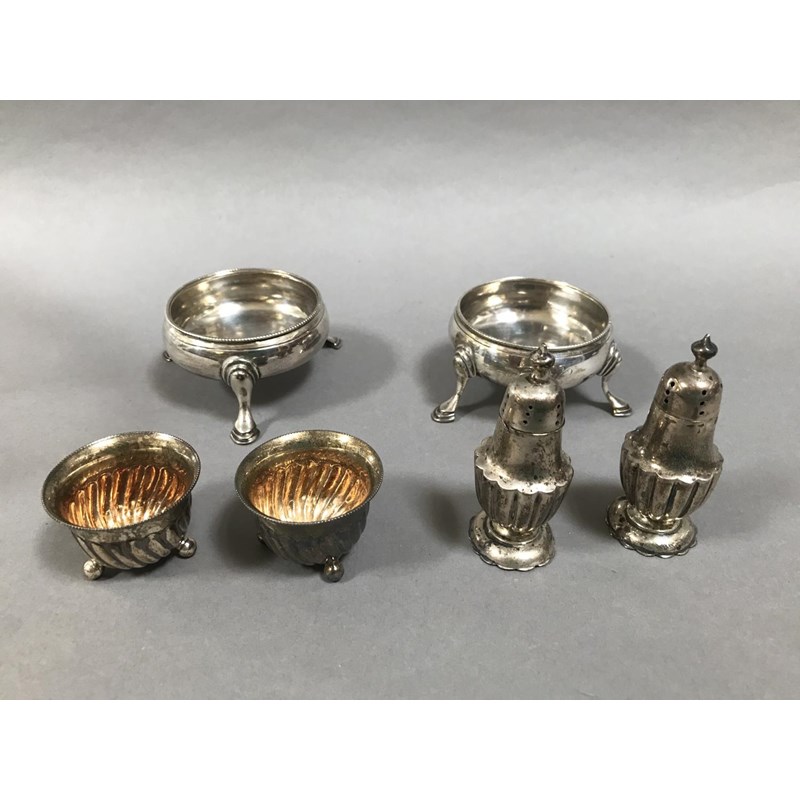 Two Pairs of Silver Salts and a Pair of Pepperettes 4.5ozt