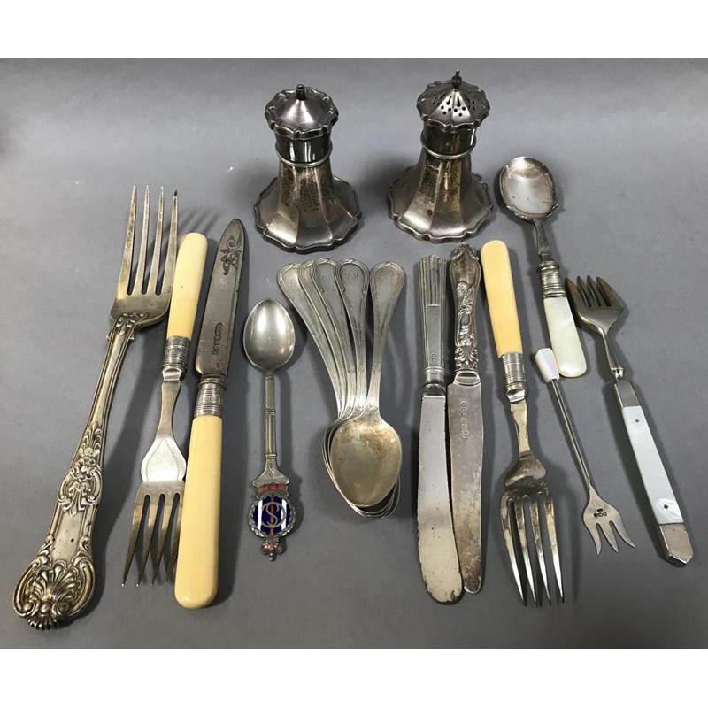 Five Silver Spoon, Silver Fork, Silver Salt and Pepper and Other Silver Platedware