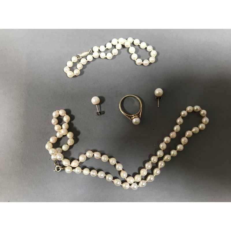 Cultured Pearl Necklace, Bracelet, Ring and Earrings