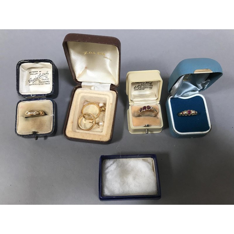 Ruby and Diamond Ring, a Garnet Ring, Diamond Ring, 18ct Gold Wedding Band, Gold Ring and Earrings