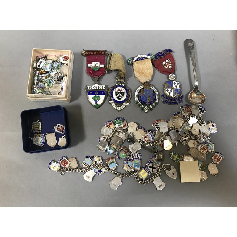 Four Silvergilt Masonic Medals and Souvenir Bracelets