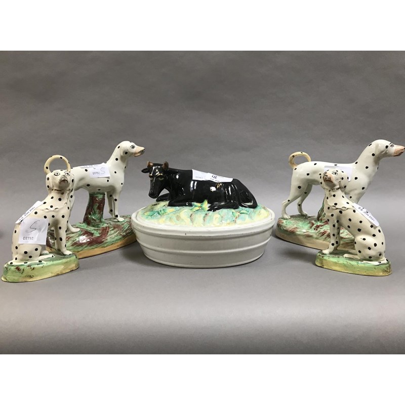 Two Pairs of Staffordshire Dalmatians, and Cow Lidded Tureen