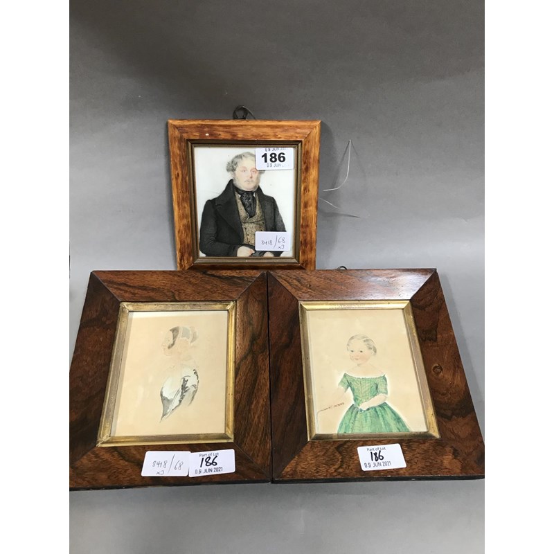 A Pair of 19thc Framed Miniature Portraits, and a Framed Portrait on Milk Glass or Alabaster
