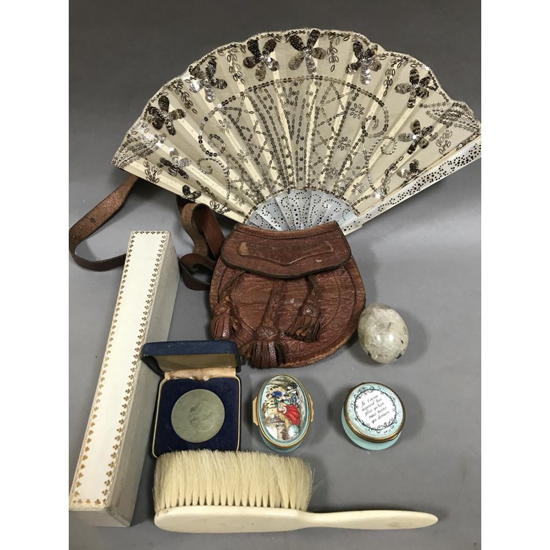 Boxed Fan, Childs Sporan, Two Enamel Boxes etc