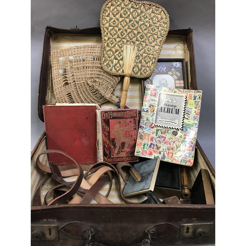 Leather Suitcase and Contents including Leather Straps and Other Items
