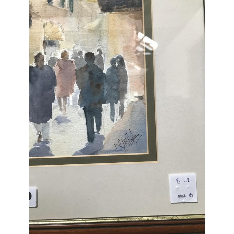 Watercolour, Crowded Street Scene and Another Watercolour, signed M Howells