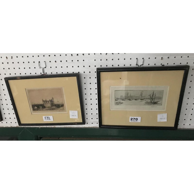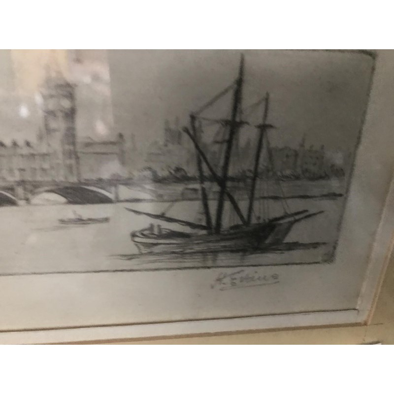 Albert T Pile, Etching of Wakefield and a Signed Print of Parliament by H Evans, 9cm x 12cm and 8cm x 17cm (2)
