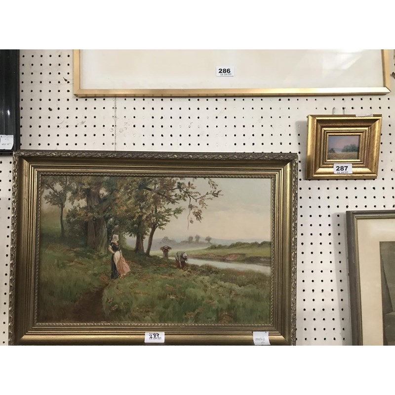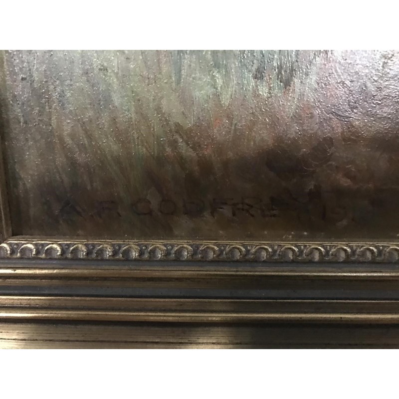 A F Godfrey, Oil on Board of Faggot Gatherers; and Another Small Modern Oil (2)