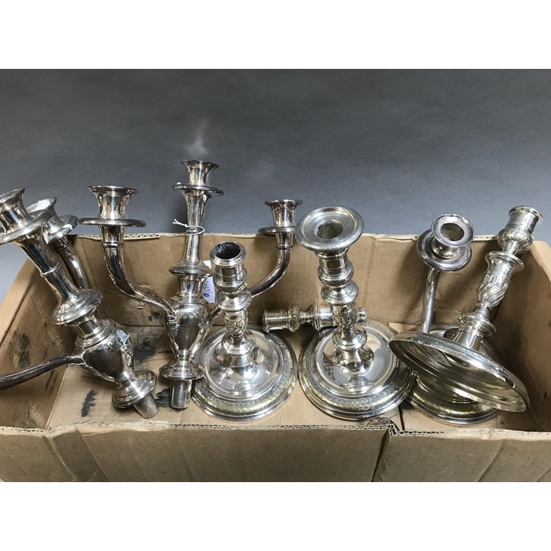 Set of Four Plated Candlesticks and a Pair of Candelabra Branches - Some Damage