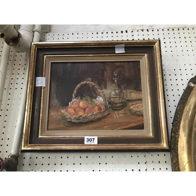 Caroline Sillars:- Basket of Peaches, Still Life, Oil on Board