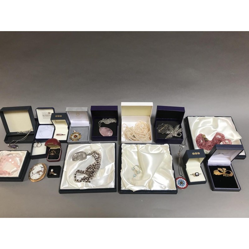 Box of Assorted Jewellery including Two Pair of 9ct Earrings and Silver Jewellery
