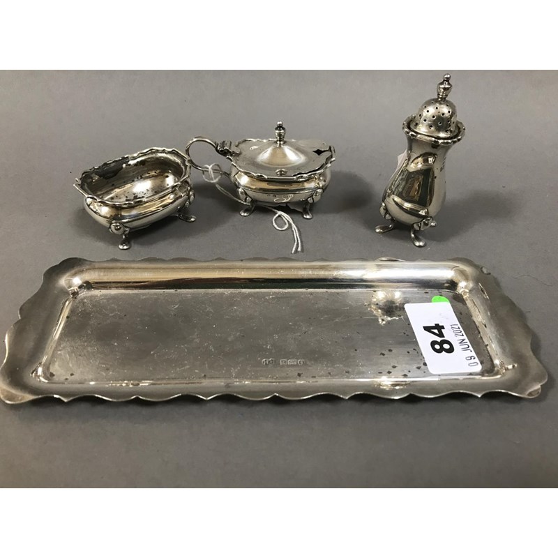 Silver Pin Tray, Mustard Pot, Salt Dish & Pepper Caster 7.5oz