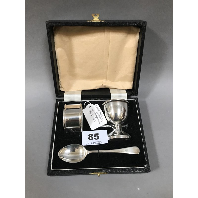 Cased Silver Egg Cup and Spoon and a Napkin Ring