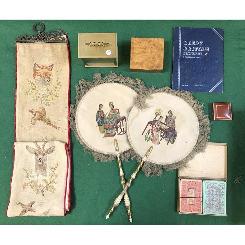 Mixed Lot of Collectables: Embroidered Bell Pull, Clock etc