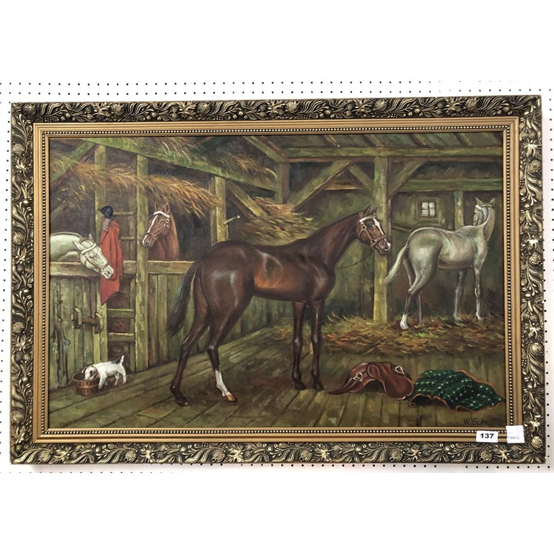 W Schuller, Oil on Canvas, Horse in a Stable, 54cm x 84cm