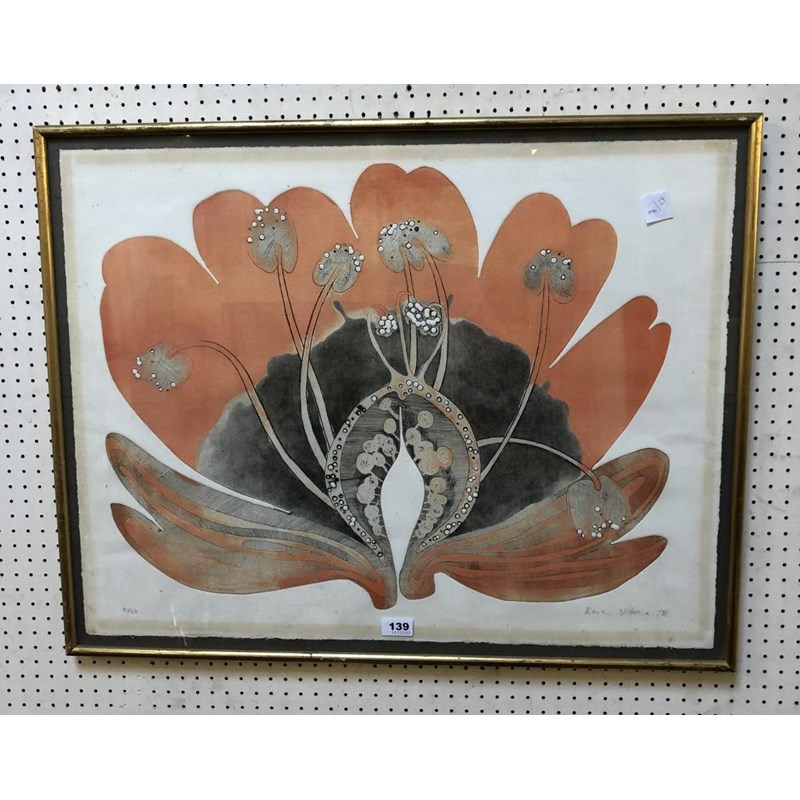 Karen Usborne Colour Etching, Flower Subject, 1971, Signed and Numbered, 60cm x 77cm