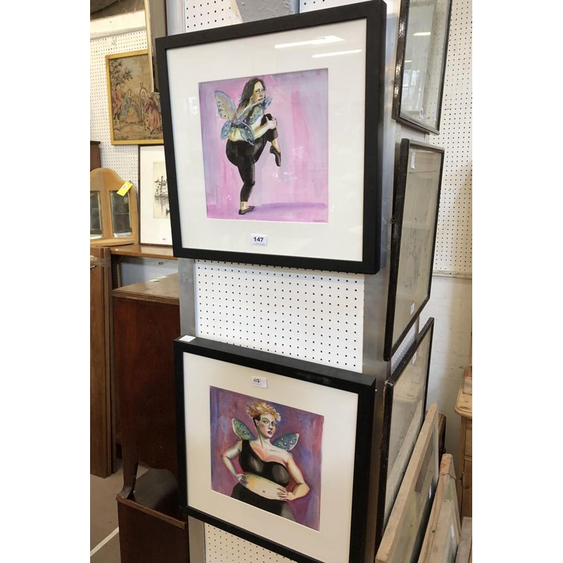 Two Framed Original Watercolours by Ronaldy Navarro Caudales, 29cm x 29cm