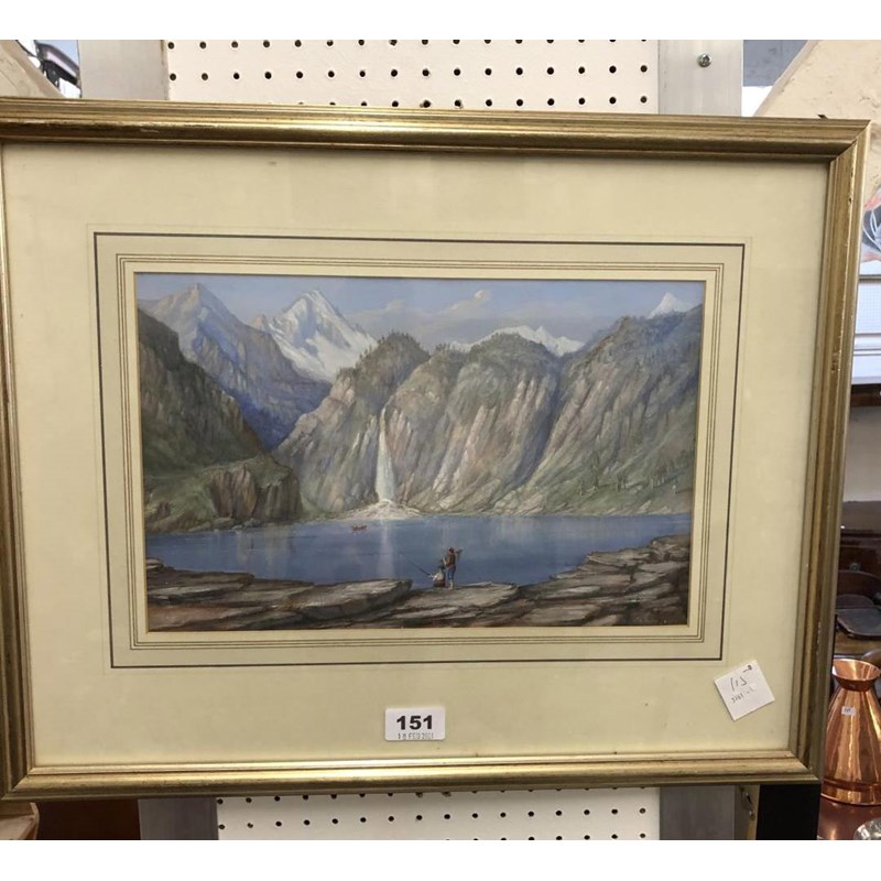 J.A Mollo, Fishing by an Alpine Lake, Gouache, 1857, 34cm x 22cm