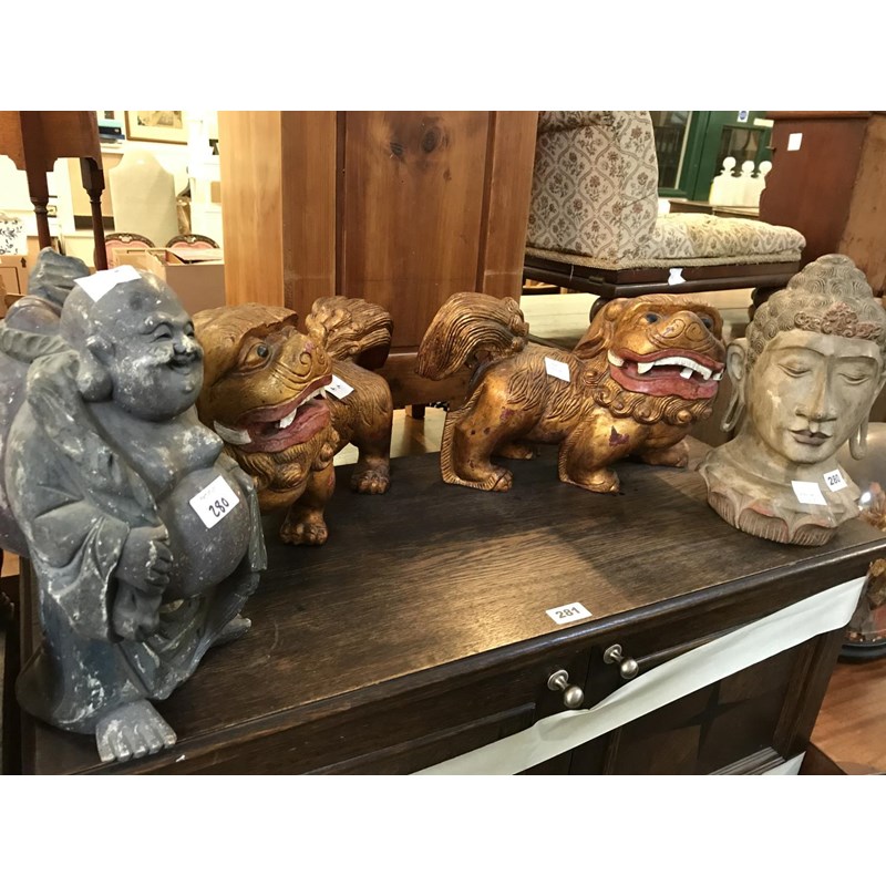 Oriental Figures (4) to include a Buddha, Lions, etc