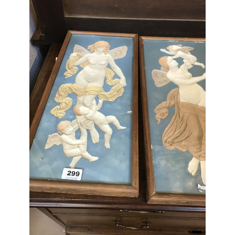 Pair of Late 19thC Plaster Intaglio Plaques inscribed 402A and 402B Verso, 50cm x 22cm