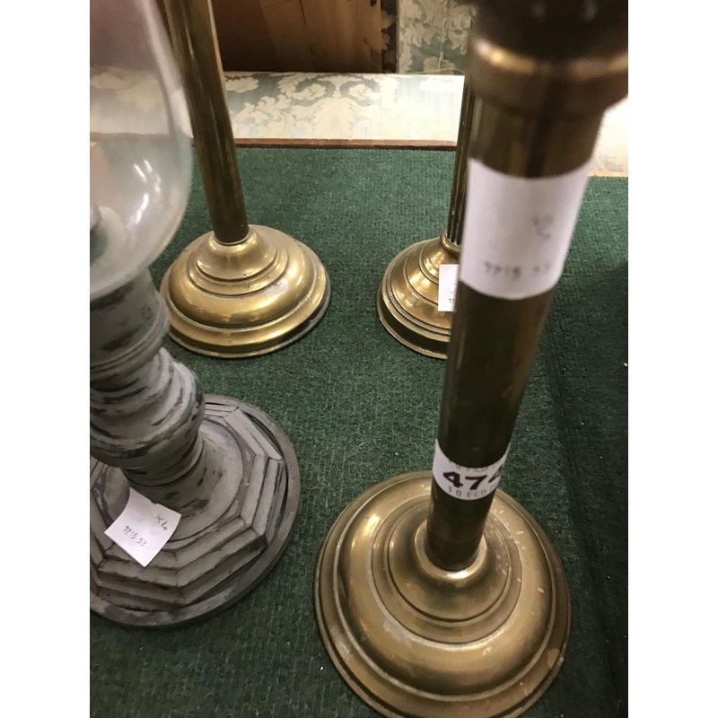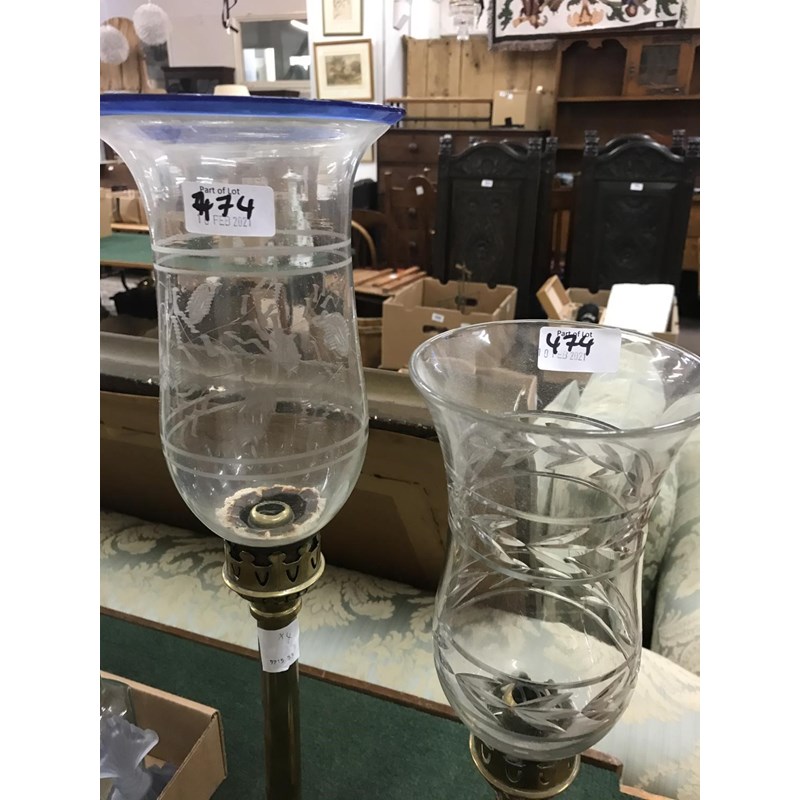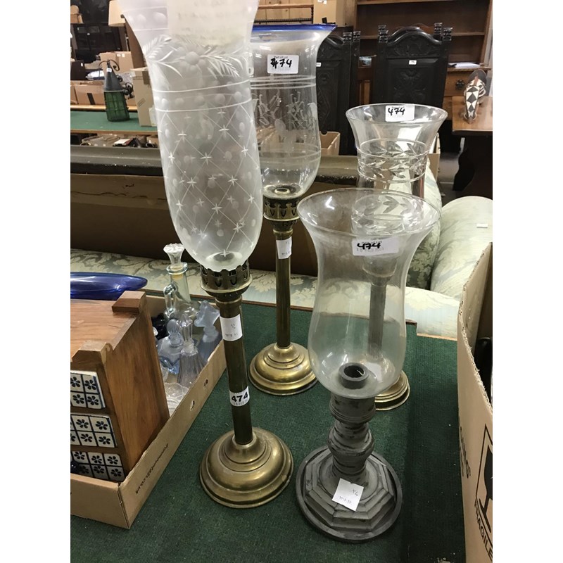 Three Brass Lamps and One Other Metal Lamp, all with Glass Shades