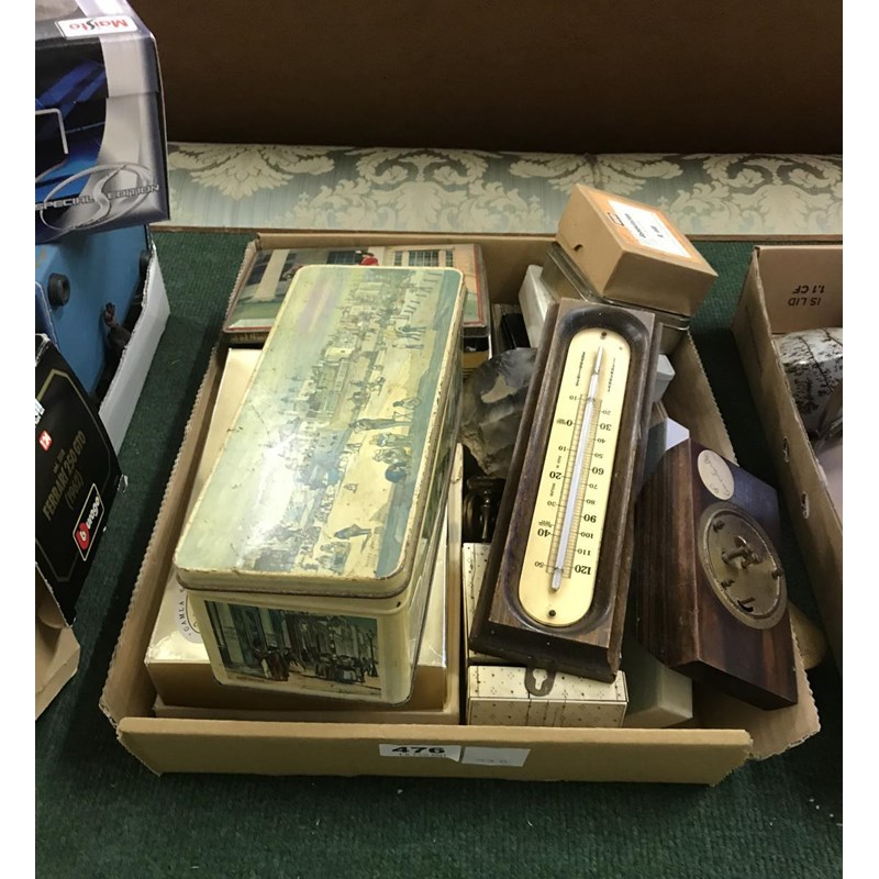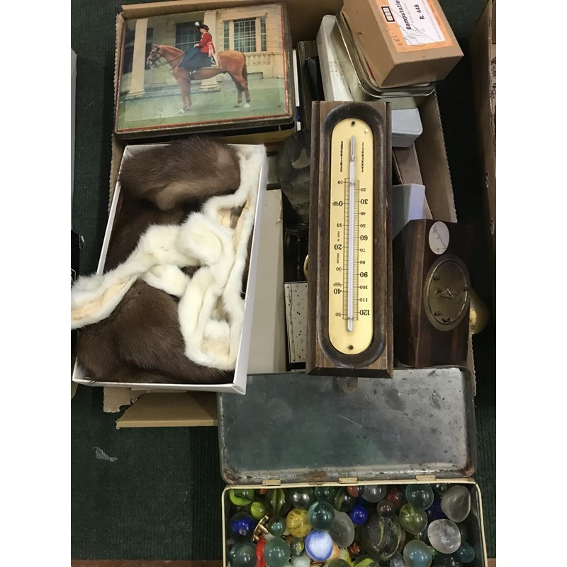 Box of Collectables Including Miniature Brass Items, Clock etc